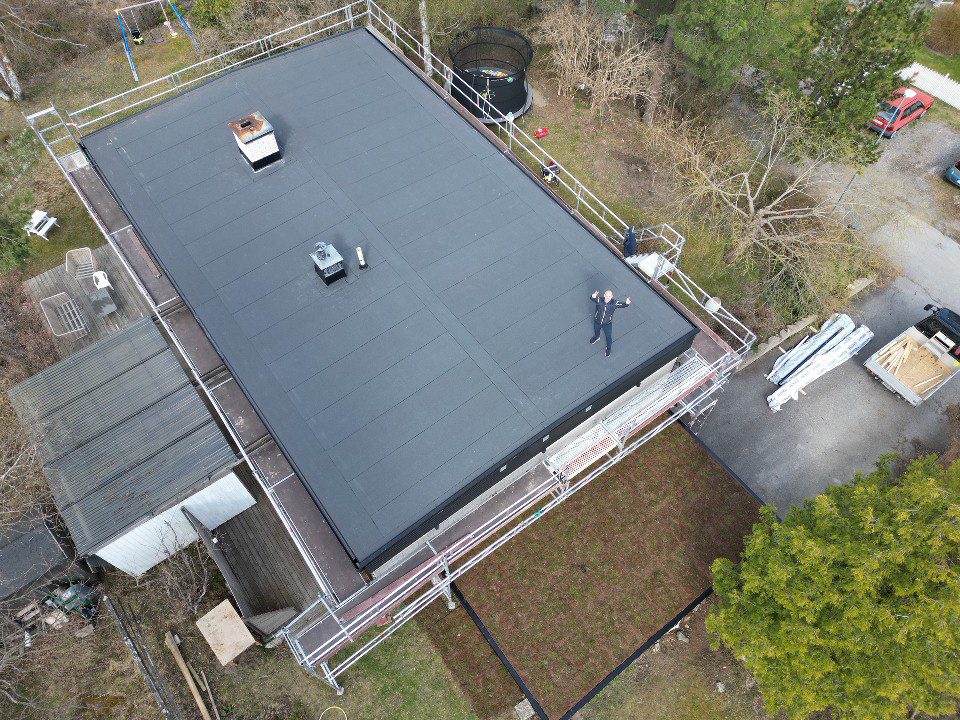 Vi fick i uppdrag att svetsa ytapapp över befintlig takpapp på huvudhuset, garagetaket däremot hade sina överraskningar pga tidigare byggnation.